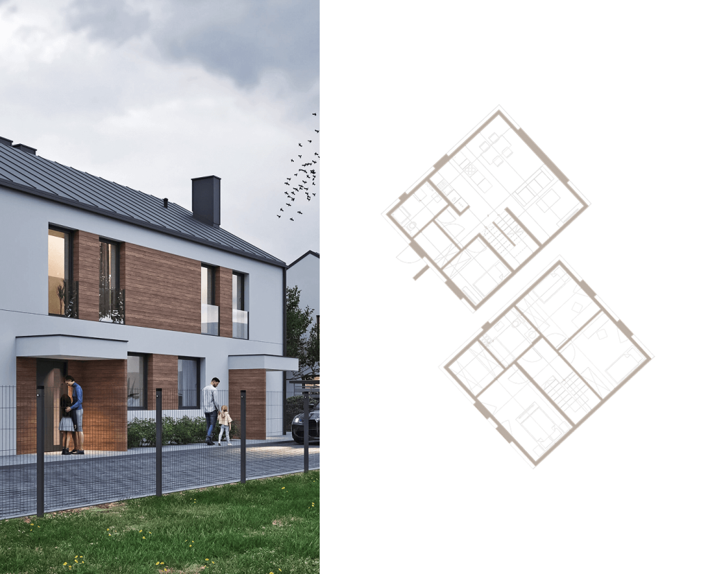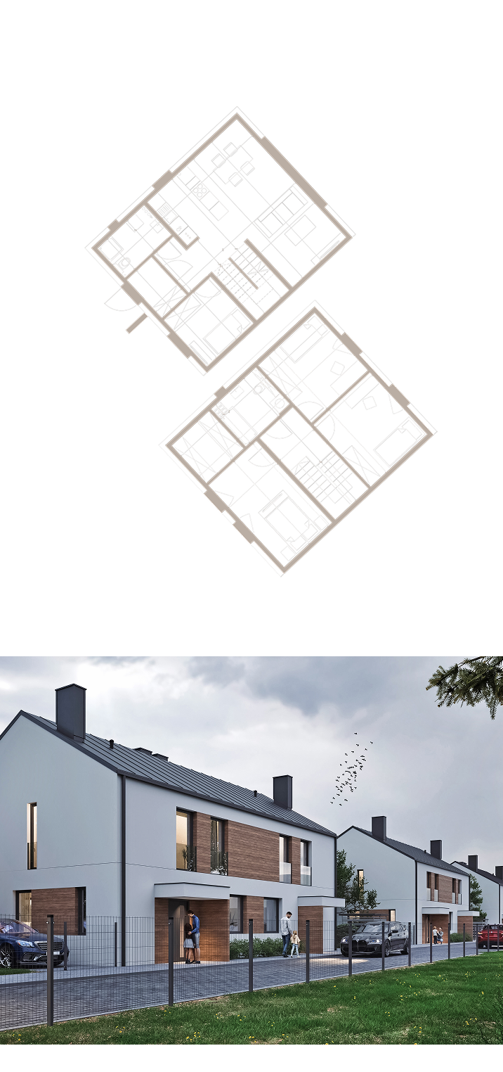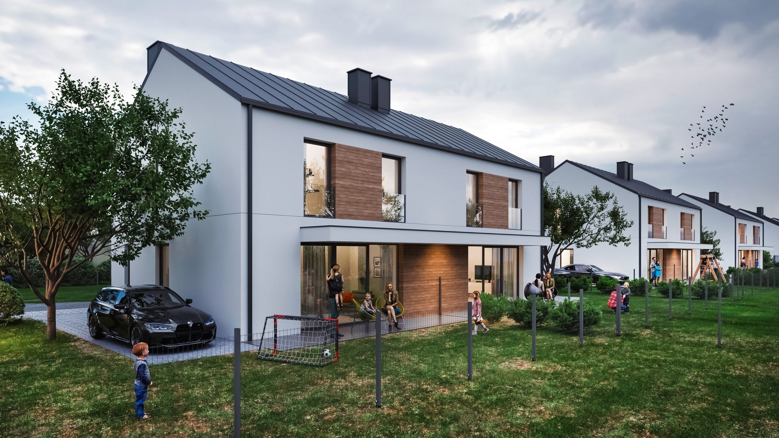 26 dwukondygnacyjnych domów, każdy o powierzchni 102,58 m2, tworzy wyjątkowy klimat. Taki, który pozwala Ci się cieszyć harmonią codzienności. To przestrzeń do życia, w której można celebrować każdy dzień. Sprzyjają temu przemyślana architektura oraz położenie w sąsiedztwie terenów zielonych, idealnych na spacery, czy do uprawiania sportów.