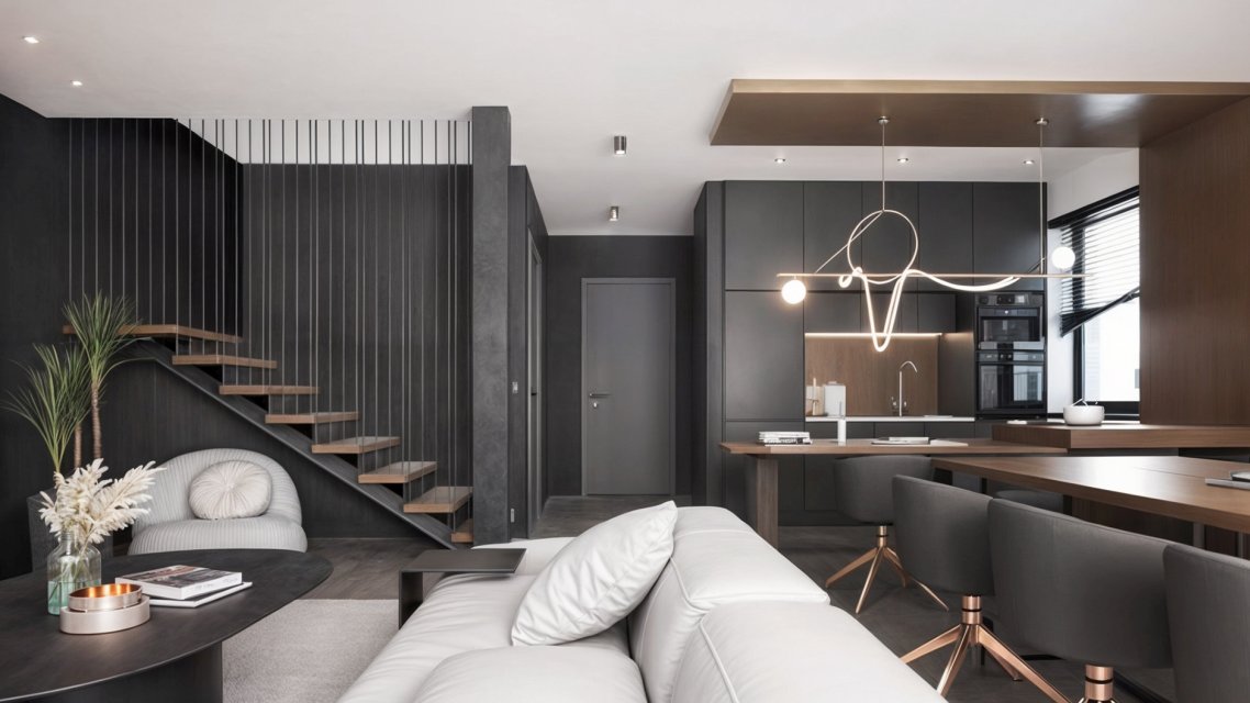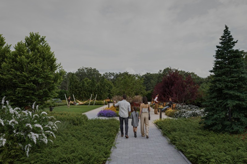 Każdy budynek ma elegancką bryłę inspirowaną nowoczesnym minimalizmem. Stonowane barwy, ograniczenie materiałów do minimum. Jednym słowem: czysta harmonia i zrównoważony rozwój. Dwuspadowy dach, przemyślane podziały oraz proporcje — oto, co sprawia, że każdy budynek imponuje designem i perfekcyjnie wtapia się w zielone otoczenie: trawniki, niskie drzewa oraz krzewy.