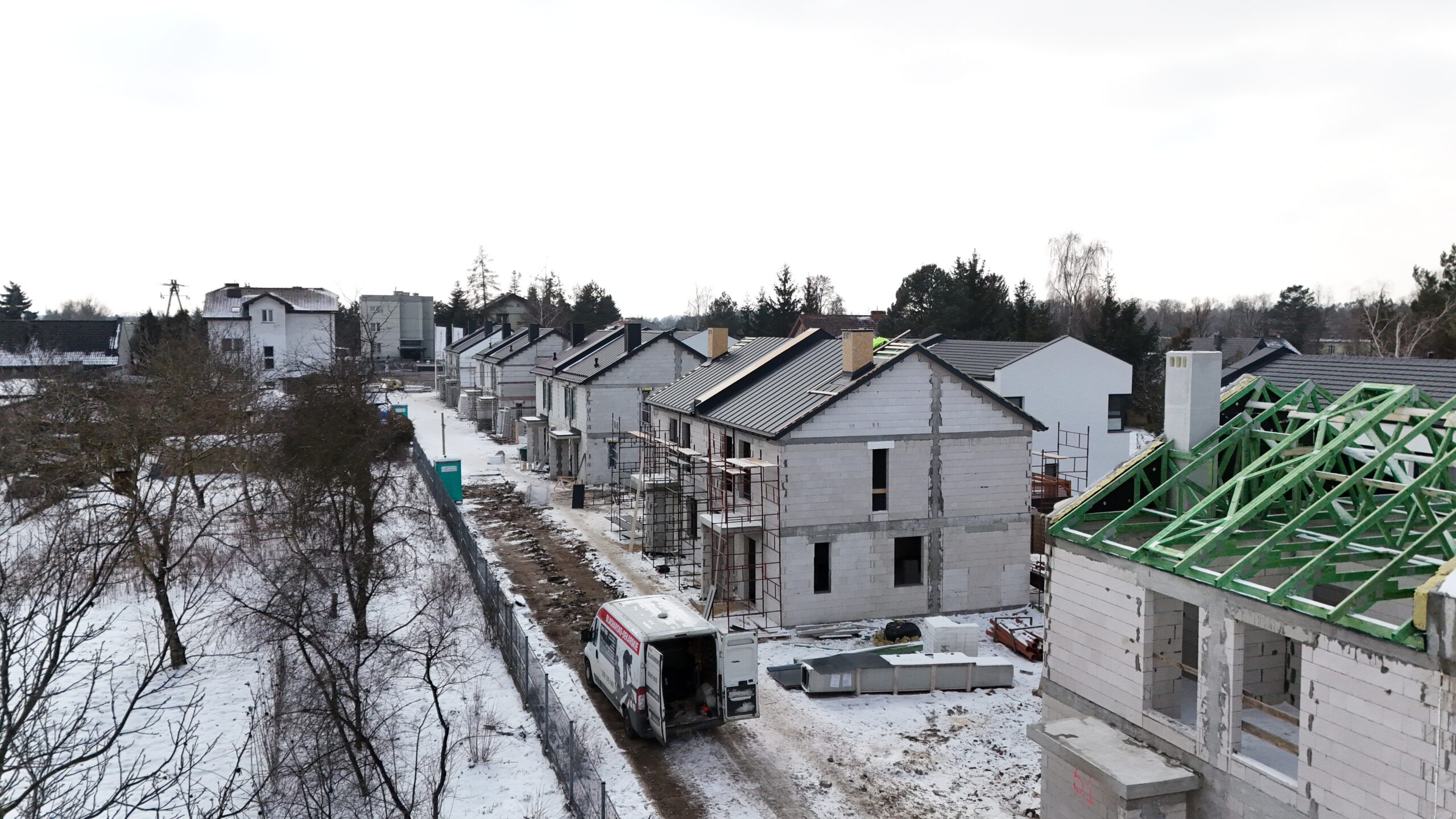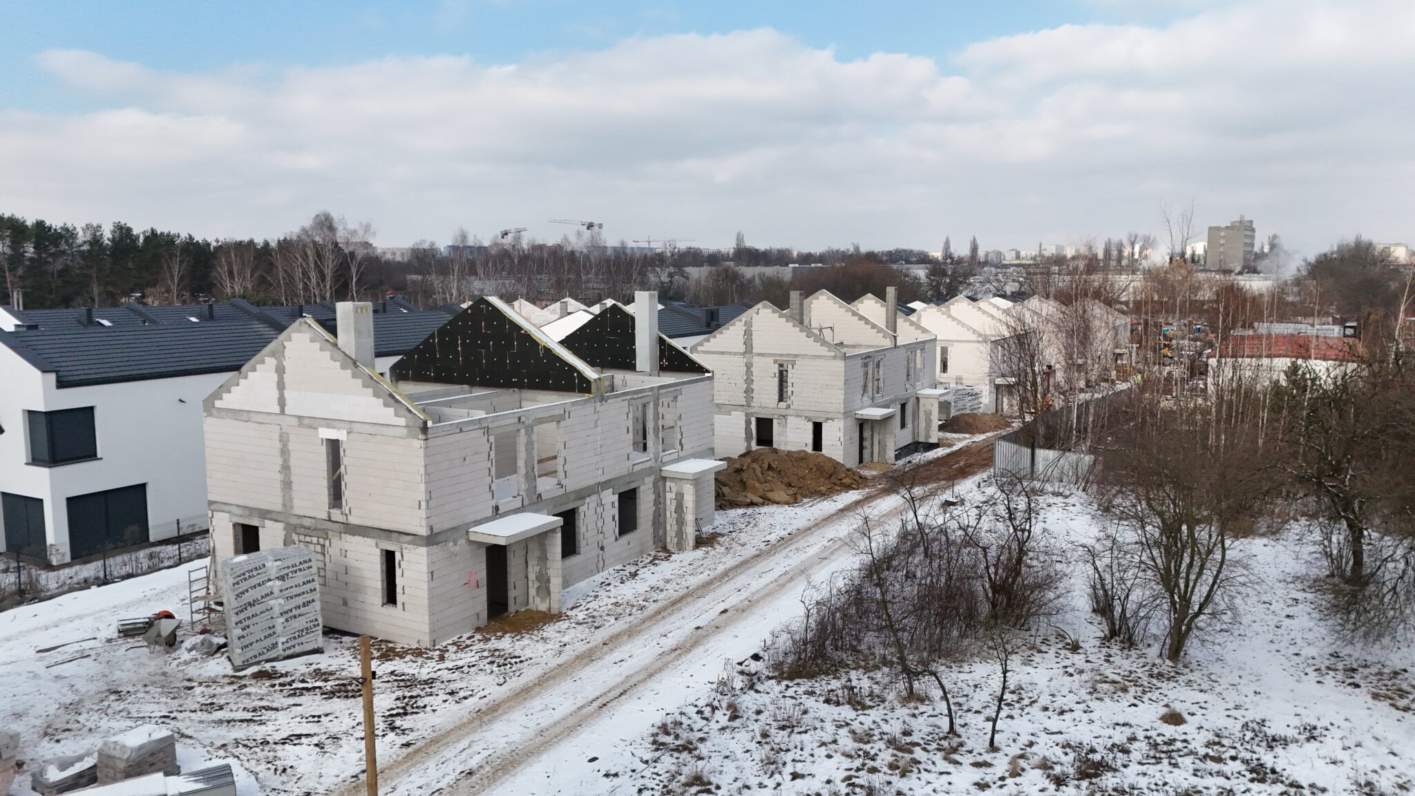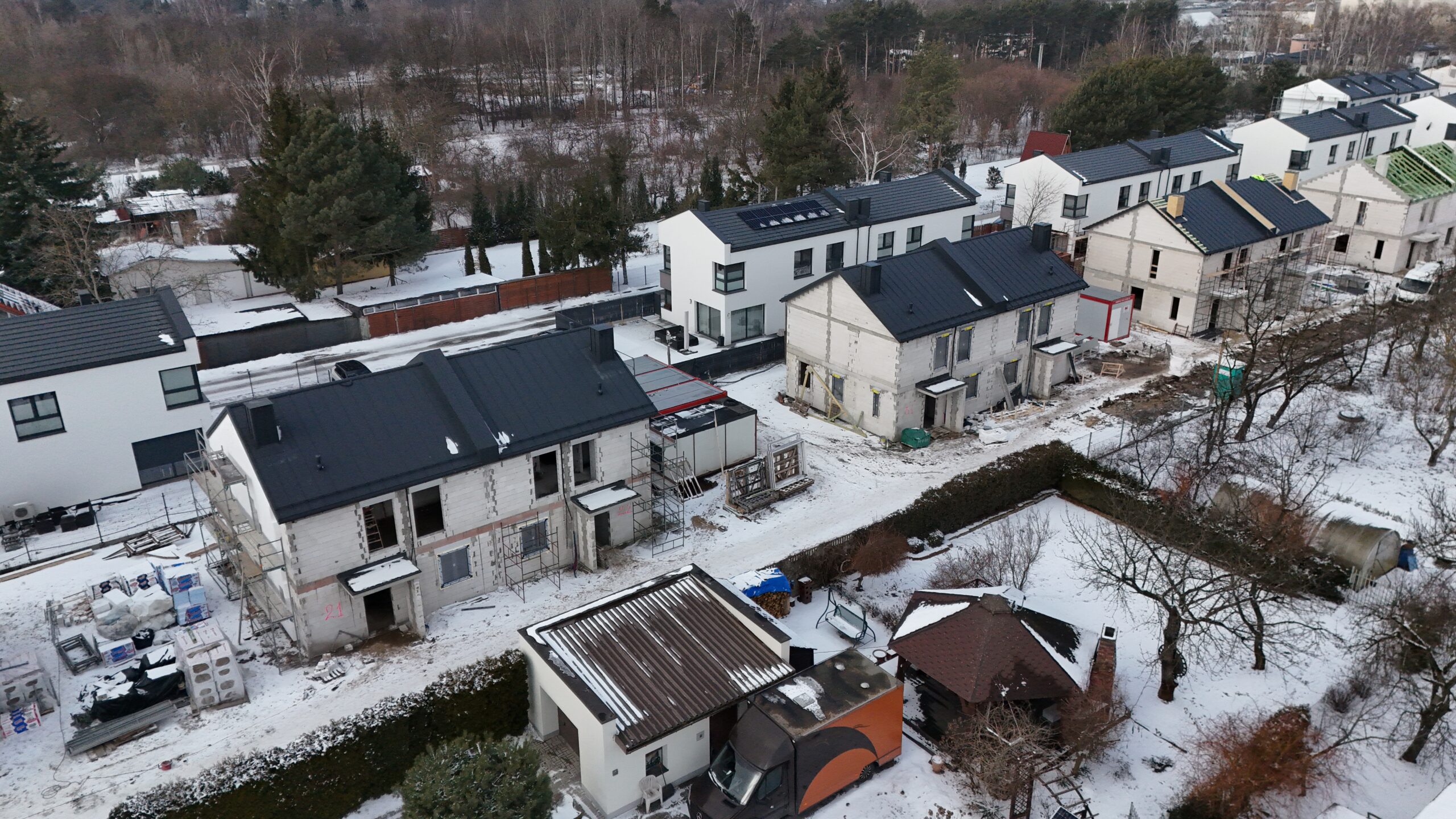 Na budowie inwestycji Pustynna 51 prace wyraźnie przyspieszyły. Powstają już więźby dachowe i dachy, które nadają budynkom docelowy kształt. W części lokali rozpoczął się również montaż okien. Z tygodnia na tydzień coraz wyraźniej widać postęp realizacji inwestycji.