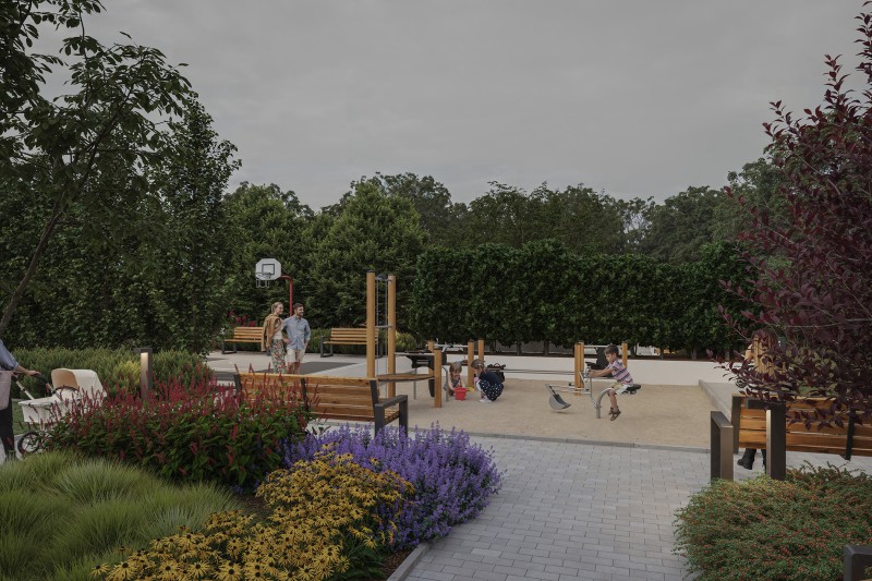 Nowoczesny, bezpieczny plac zabaw otoczony zielenią to idealne miejsce codziennej aktywności najmłodszych. Komfortowa przestrzeń do zabawy i odpoczynku, zaprojektowana z myślą o dzieciach i ich rodzicach.