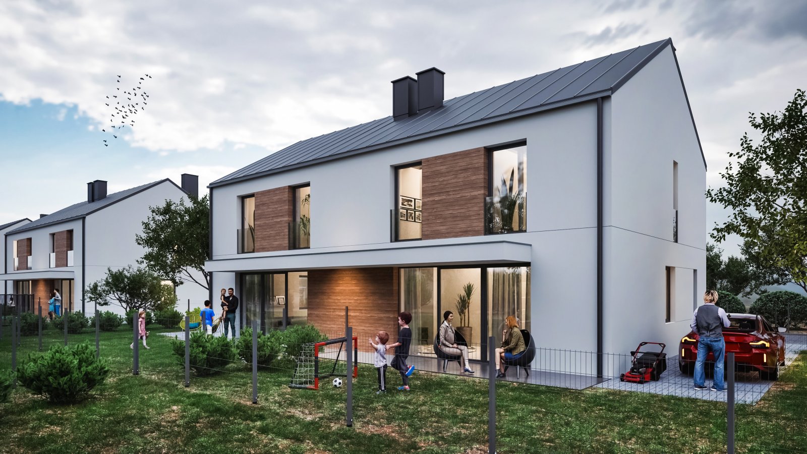 Każdy dom jest wyposażony w oddzielne, niezależne źródło ogrzewania — pompę ciepła. Dzięki temu ekologicznemu i ekonomicznemu rozwiązaniu masz pełną kontrolę nad pracą instalacji oraz nad kosztami.